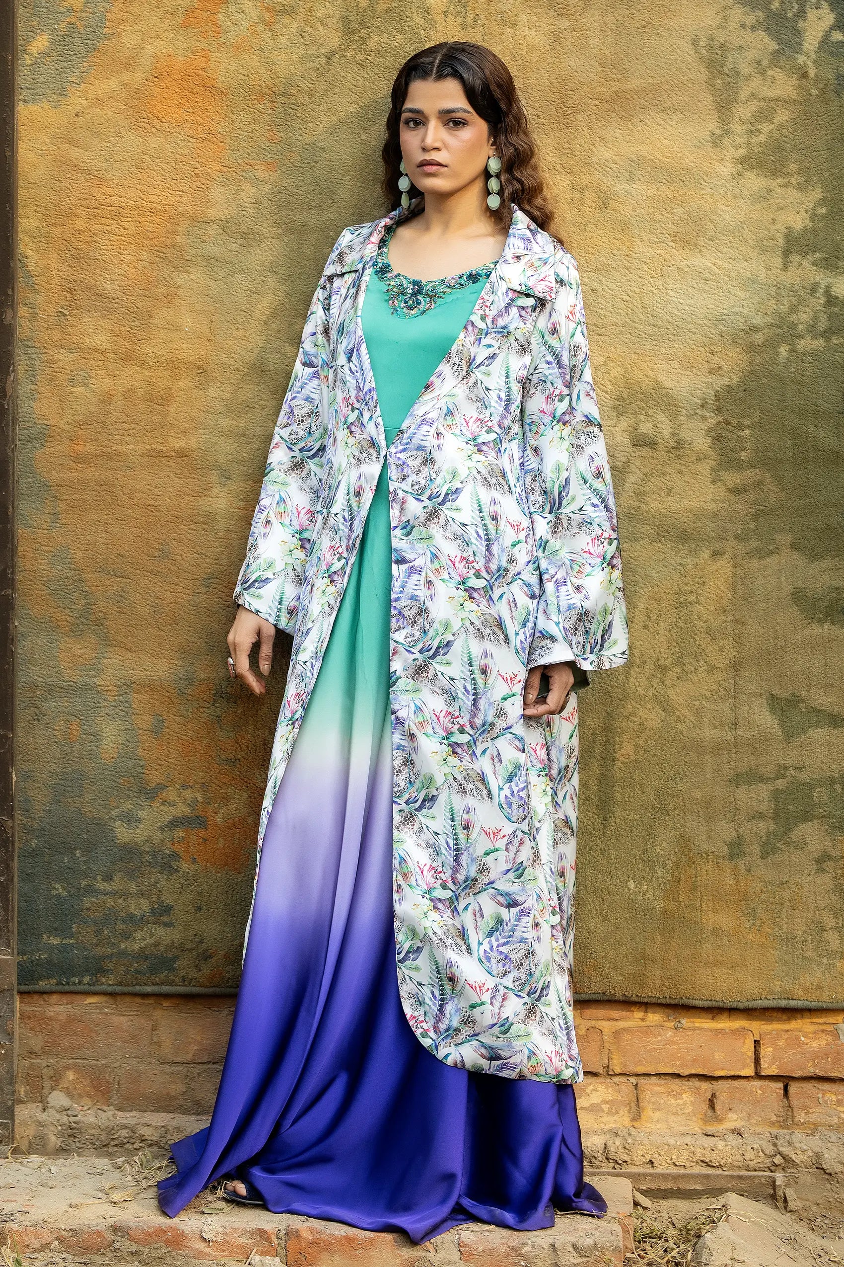 Introducing our latest statement piece: the chic and versatile coat that seamlessly blends elegance with contemporary flair. The pishwas has a embellished neckline and features a sleek silhouette that flatters every body type. The coat is tailored with a structured collar and subtle detailing, making it perfect for both casual outings and formal events.