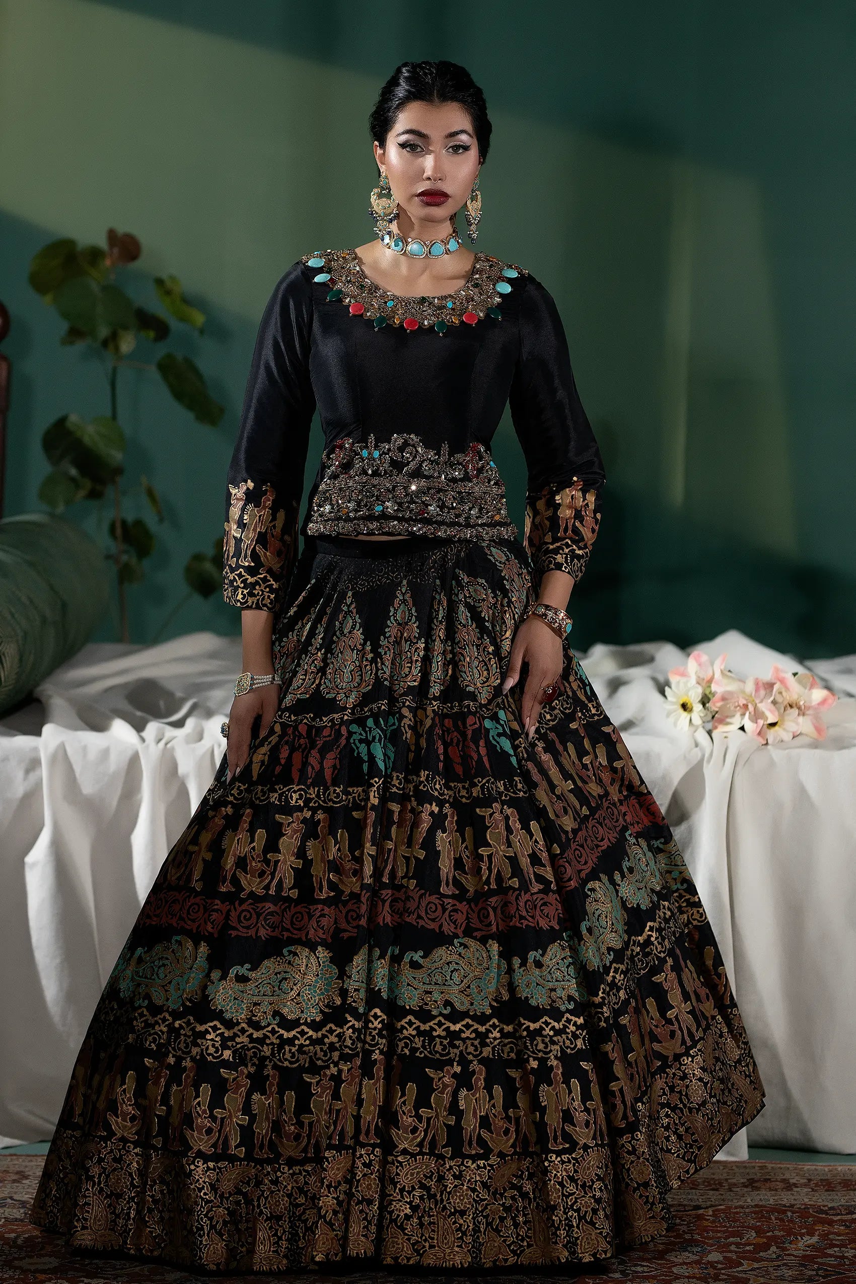 Introducing the "Meraki ' dress, a stunning ensemble that effortlessly combines traditional craftsmanship with modern elegance. The skirt features exquisite block printing, showcasing intricate patterns that bring a unique charm to the outfit. Paired with an embellished blouse, this dress is adorned with sparkling stones, delicate dabka work, shimmering moti, and radiant crystals, along with beautifully crafted beads. Each detail reflects the artistry and dedication that has gone into creating this masterpiece, making it perfect for any special occasion where you want to make a statement.